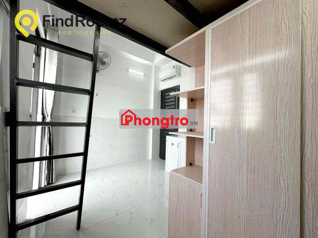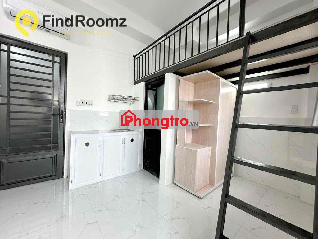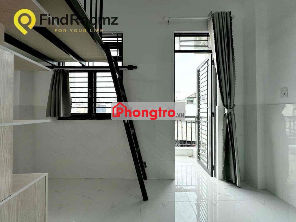 Phòng mới xây sẵn gác + máy lạnh+ tủ áo cửa sổ hành lang, ban công