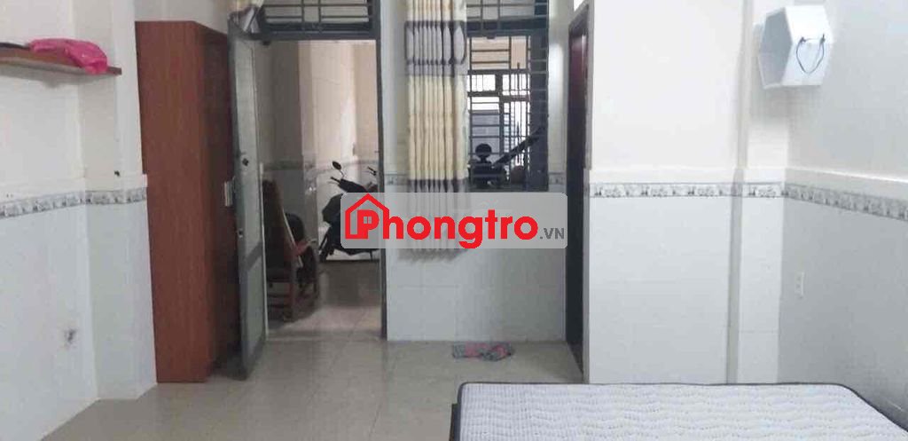 Phòng có máy lạnh, rèm cửa, giường gỗ + nệm, tủ quần áo âm tường, tủ Tivi, kệ bếp nấu.