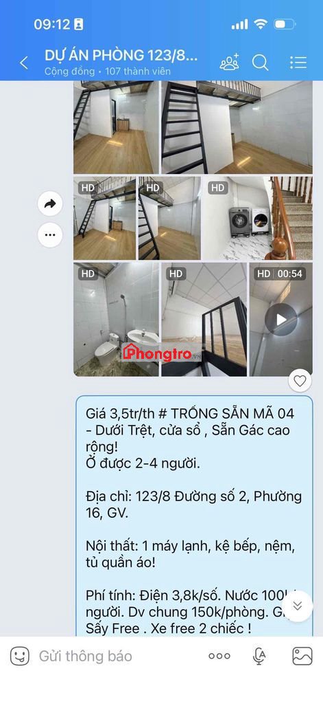 Phí tính: Điện 3,8k/số. Nước 100k/người. Dv chung 150k/phòng. Giặt/ Sấy Free . Xe free 2 chiếc !