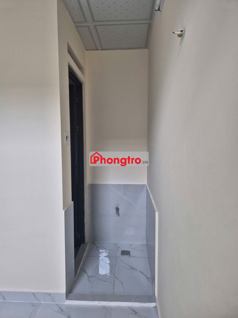 Phòng trống mới xây, có sân nhỏ để xe máy, vỉa hè bên ngoài để buôn bán nhỏ, nhà vệ sinh riêng, trệt + gác lửng. Tổng diện tích 25 m2.