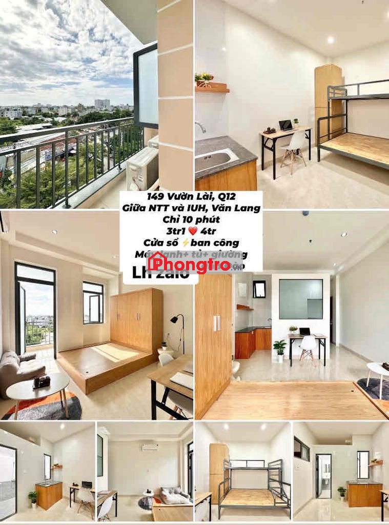 Phòng ở Vườn Lài Q12 giữa NTT và Văn Lang-IUH 3tr1-4tr cửa sổ ban công