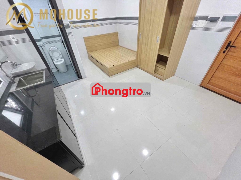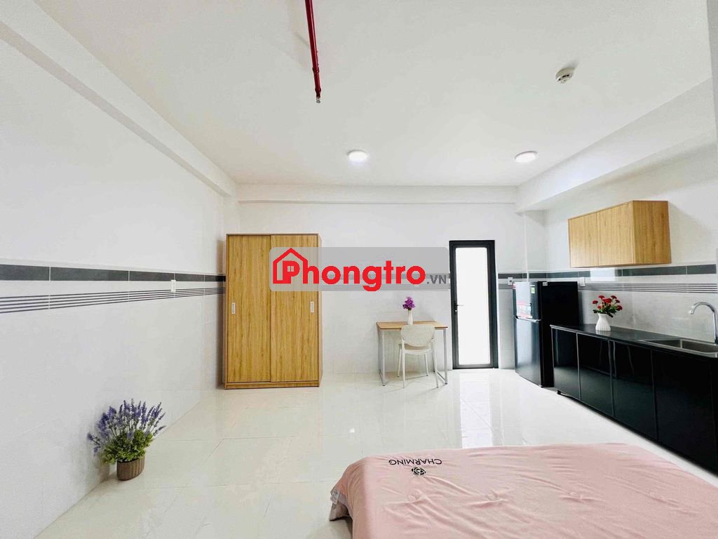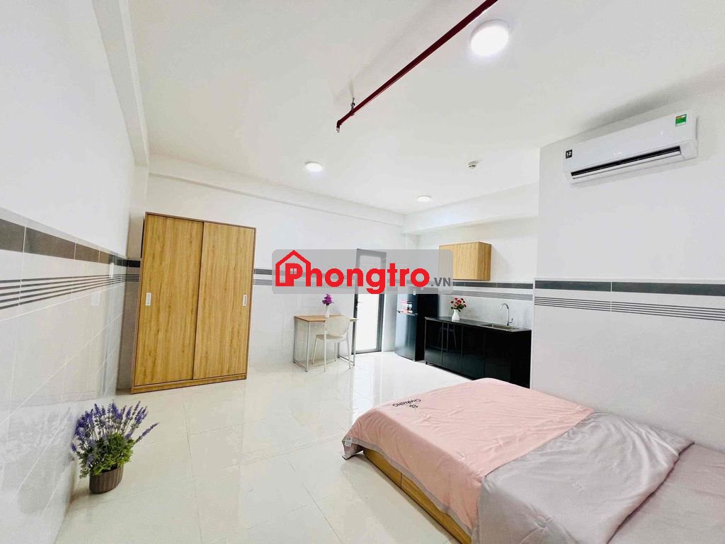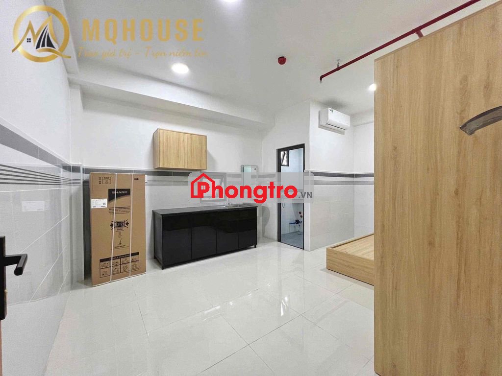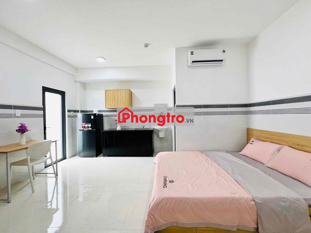 Có máy lạnh, giường, tủ bếp
