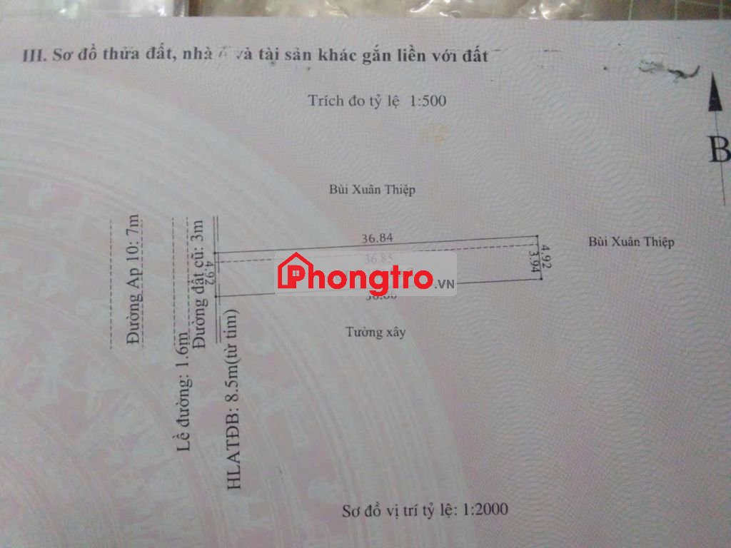 Diện tích 181m ngang 5m x 37m đã lên thổ cư 144m Gồm 12 phòng trọ cho thuê ở kín và 1ki ốt đang cho thuê buôn bán .
