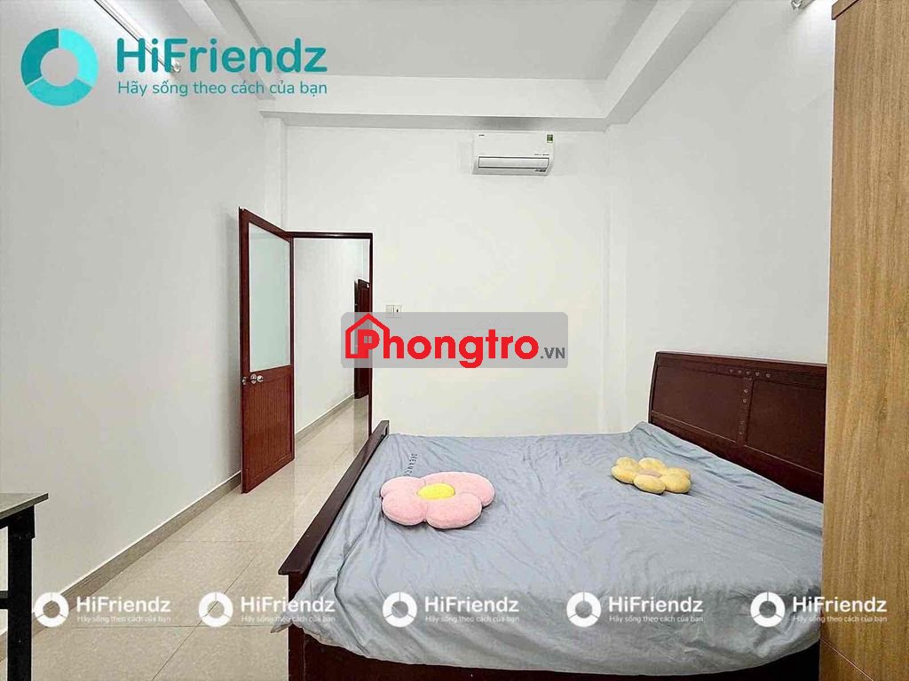 Phòng rộng 35m2, phân thành 2 khu vực phòng bếp và phòng ngủ riêng. Phòng cửa sổ trời thoáng mát. Gổm Tủ lạnh, bàn ăn, giường, nệm, tủ quần áo, bàn làm việc, máy lạnh, máy giặt. Có máy sấy chung dưới trệt