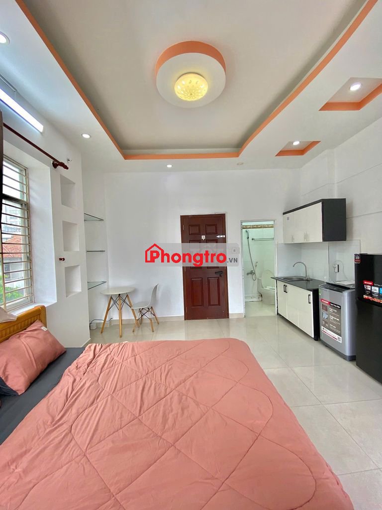 Trang bị nội thất đầy đủ: giường nệm, tủ quần áo, bàn ghế, bếp riêng, máy lạnh, tủ lạnh, máy giặt trong tòa.