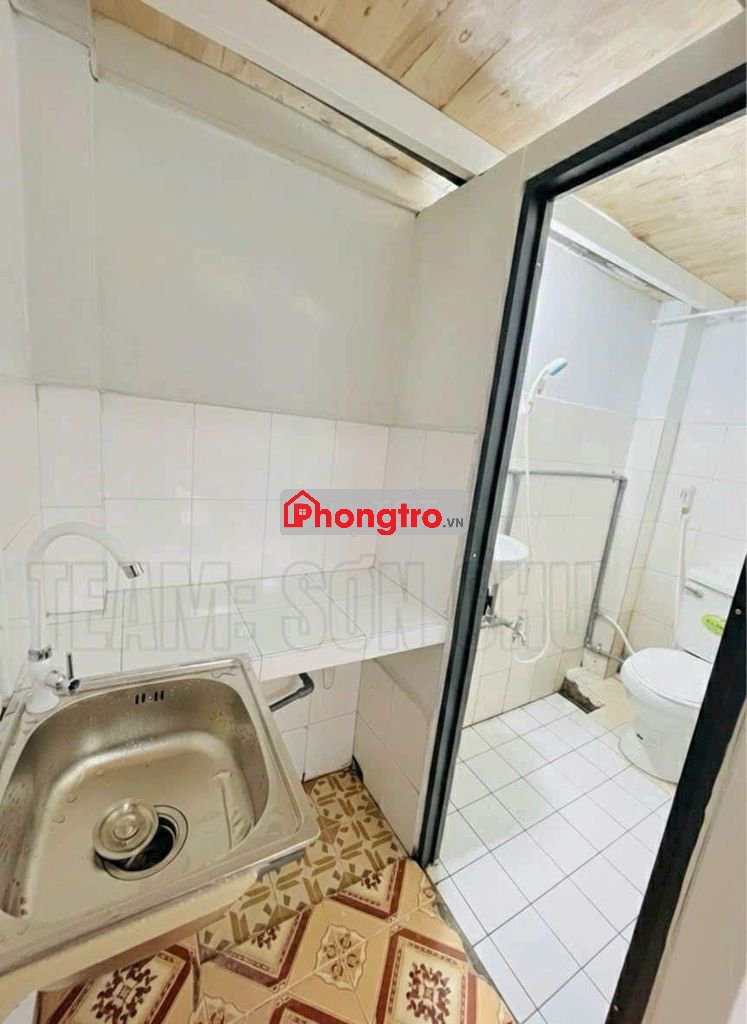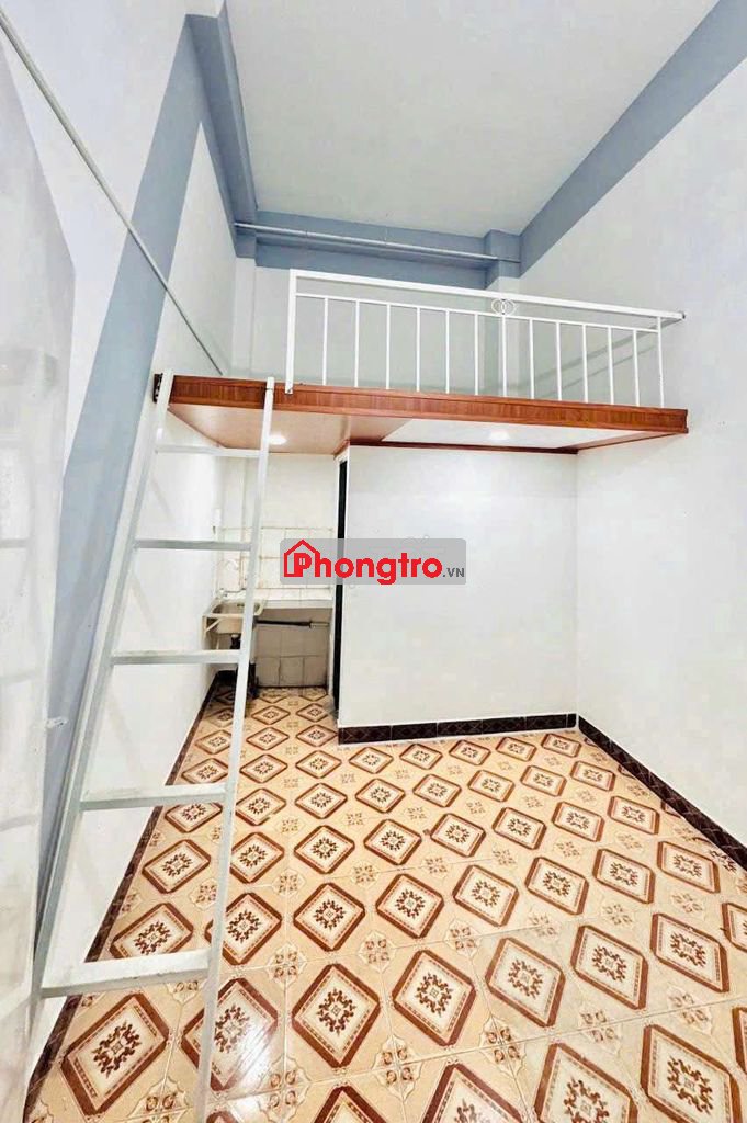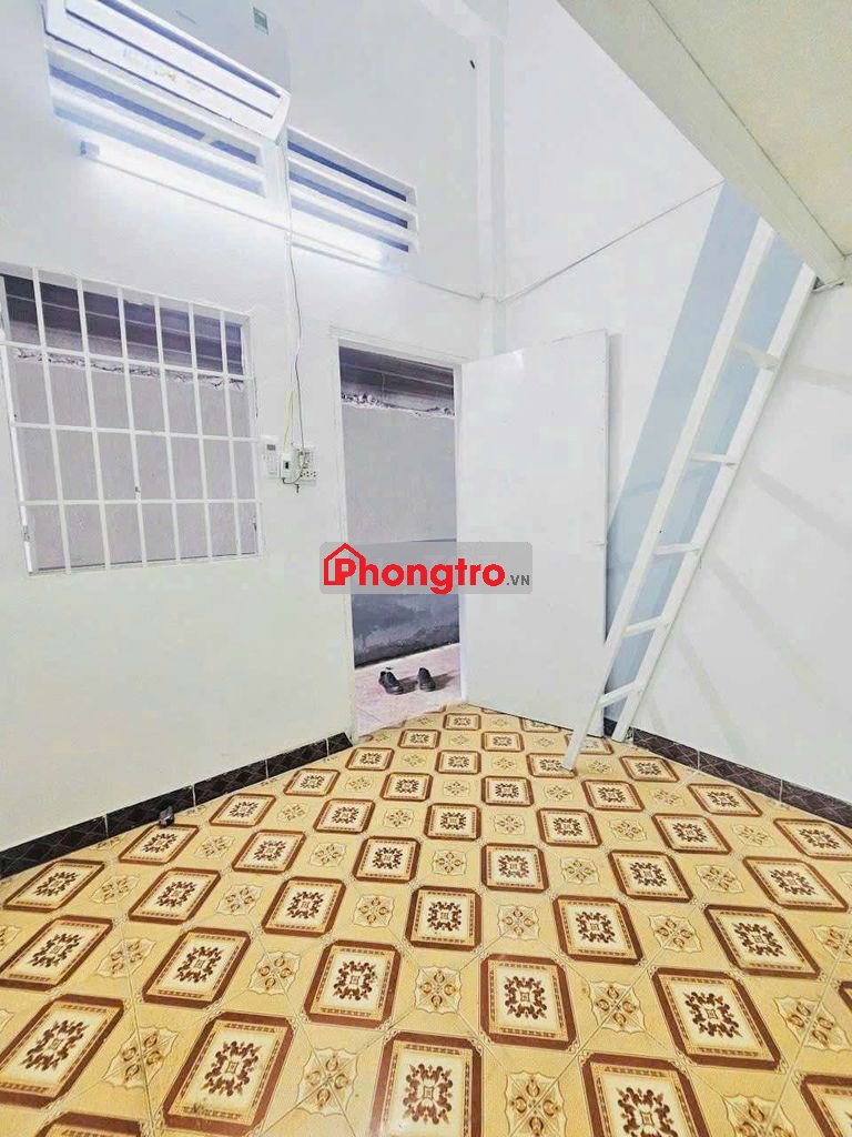 👉 Phòng có gác lửng, cửa sổ, kệ bếp, bồn rửa chén, máy lạnh mới