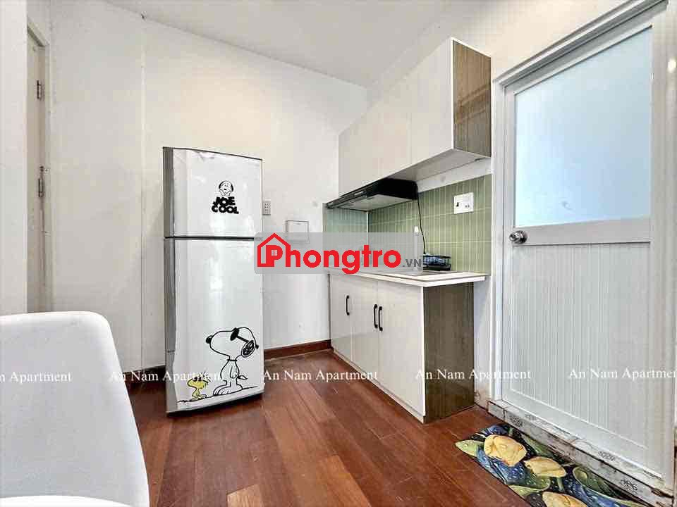 * Nội thất và thiết bị: Giường, tủ, kệ tivi, bàn ghế, máy lạnh, tủ lạnh, máy giặt riêng, hút mùi bếp, bếp điện đơn.