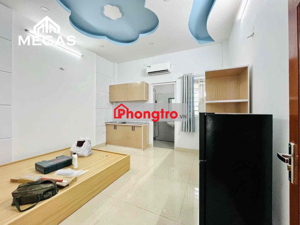 Phòng cực xịn – đầy đủ nội thất: giường, tủ, máy lạnh, bếp riêng, tủ lạnh
