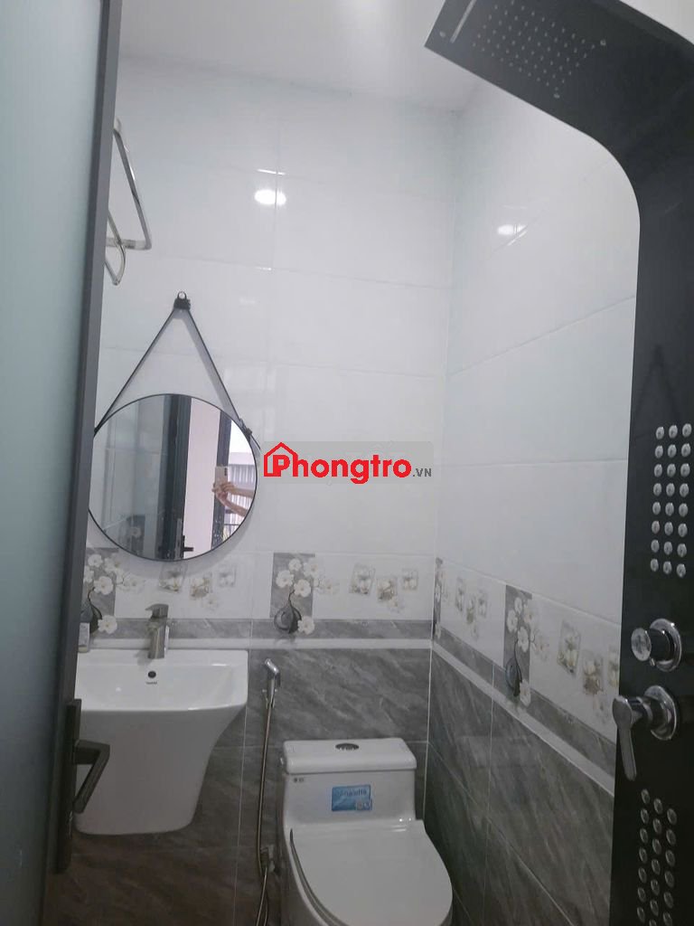 Có phòng tắm sạch sẽ bên trong, vòi sen đầy đủ, nhà mới, vào ở ngay, có chỗ để xe