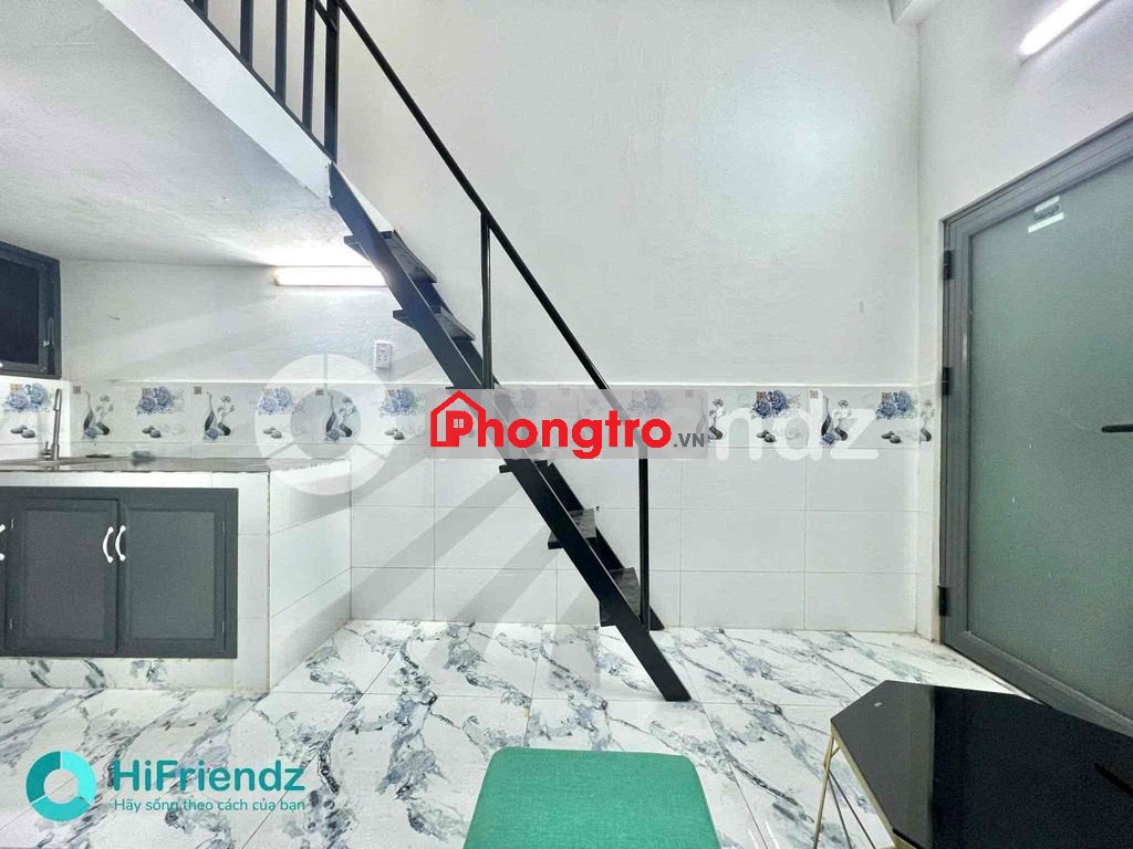 -Phòng gác cao, sẵn máy lạnh, tủ bếp,bồn rửa chén, tủ quần áo âm tường