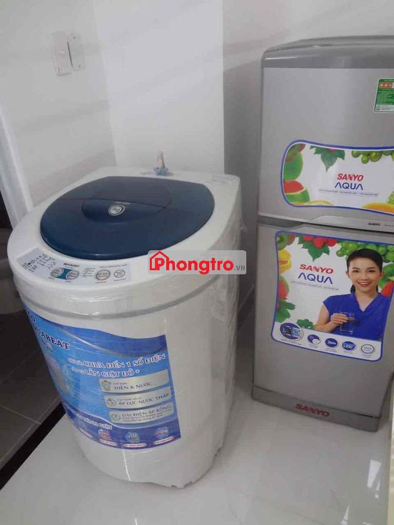 6. Trang bị máy lạnh 1.5Hp, tủ lạnh, tủ quần áo lớn , TIVI LED, máy giặt riêng từng phòng, bàn làm việc, nệm & giường rộng rãi bên trong từng phòng.