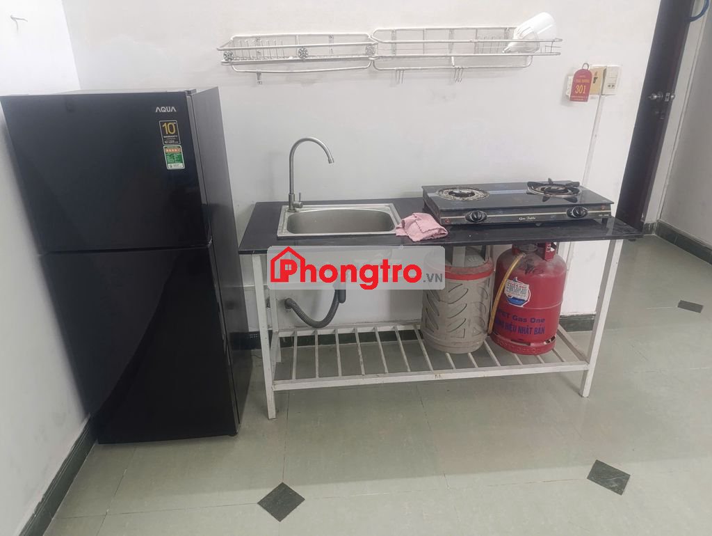 Diện tích: 34 m2, có trang bị máy lạnh, có ban công và cửa sổ, có sẵn bếp gaz và tủ lạnh, có máy giặt công cộng ở sân thượng, hướng đông nam, phòng ở lầu 3 không có thang máy, toilet trong phòng, có sẵn wifi, 1 bàn nhỏ, 1 bàn nấu ăn lớn và rửa chén, nguyên tầng trệt để xe gắn máy