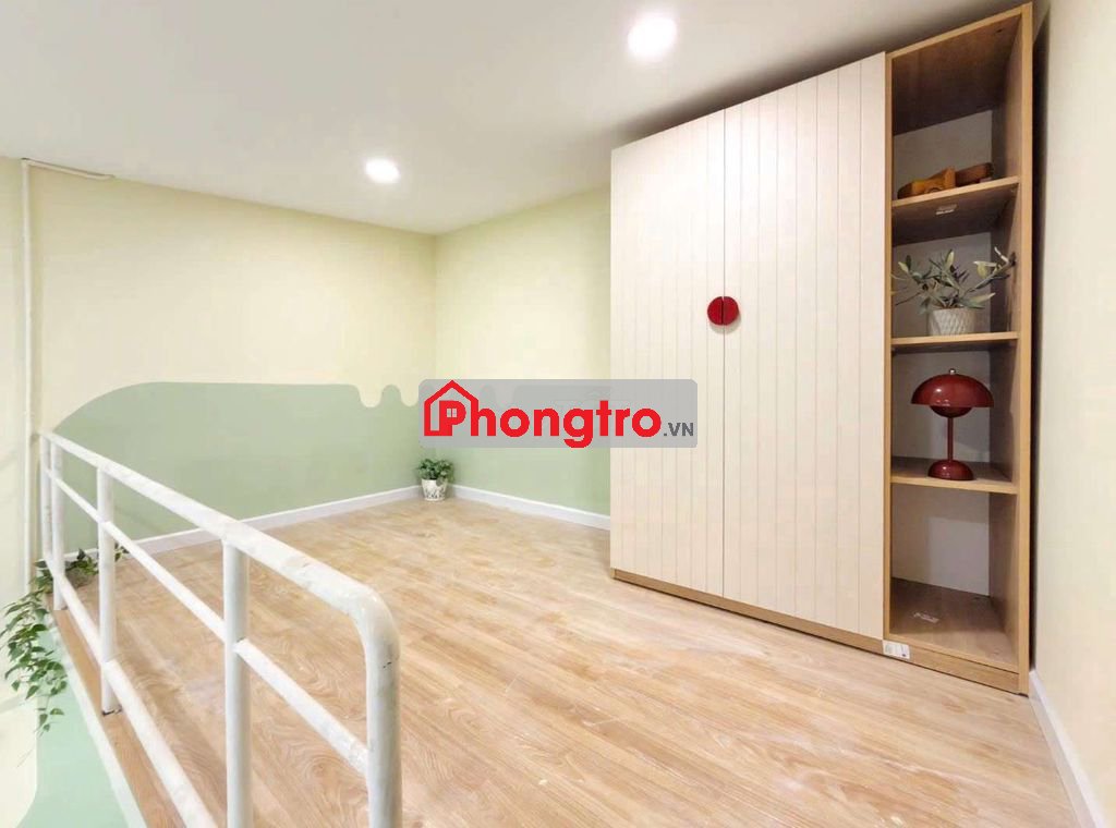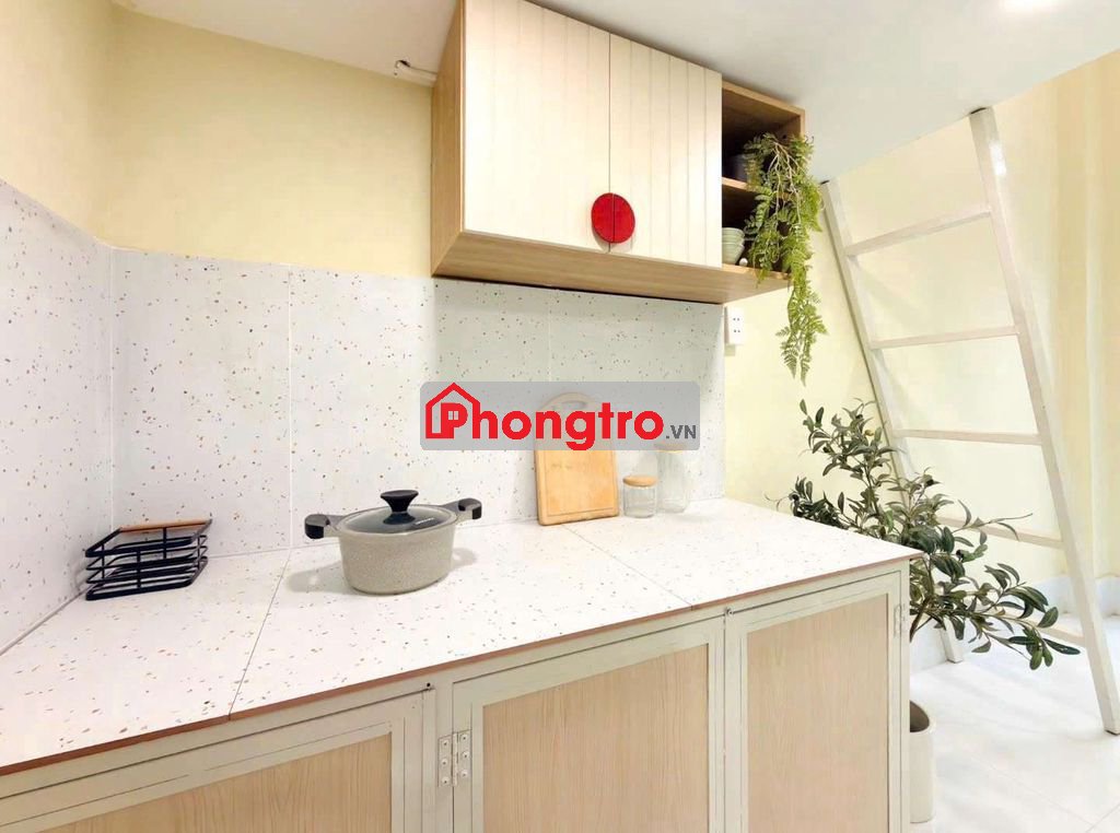 có gác + máy lạnh+kệ bếp+ cửa sổ + bồn rửa chén+ tủ quần áo