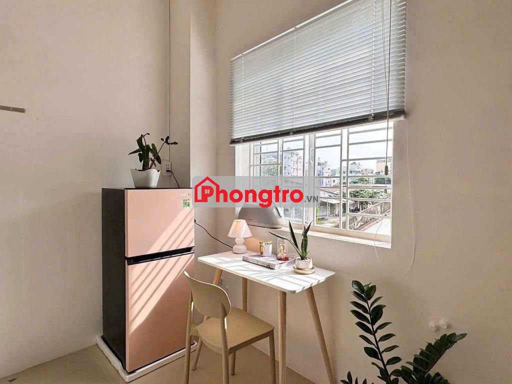 Phòng rộng rãi, thoáng mát – đầy đủ nội thất: máy lạnh, kệ bếp, tủ quần áo, bàn ghế, kệ dép. Có thể thêm tủ lạnh nếu cần.