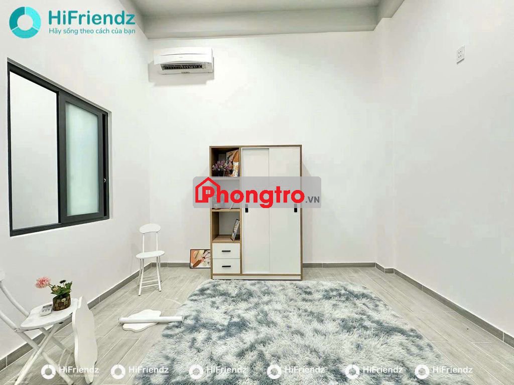 Phòng có sẵn tủ đồ, kệ bếp, bàn ghế, máy lạnh, nệm (có thể nâng cấp thêm tủ lạnh).