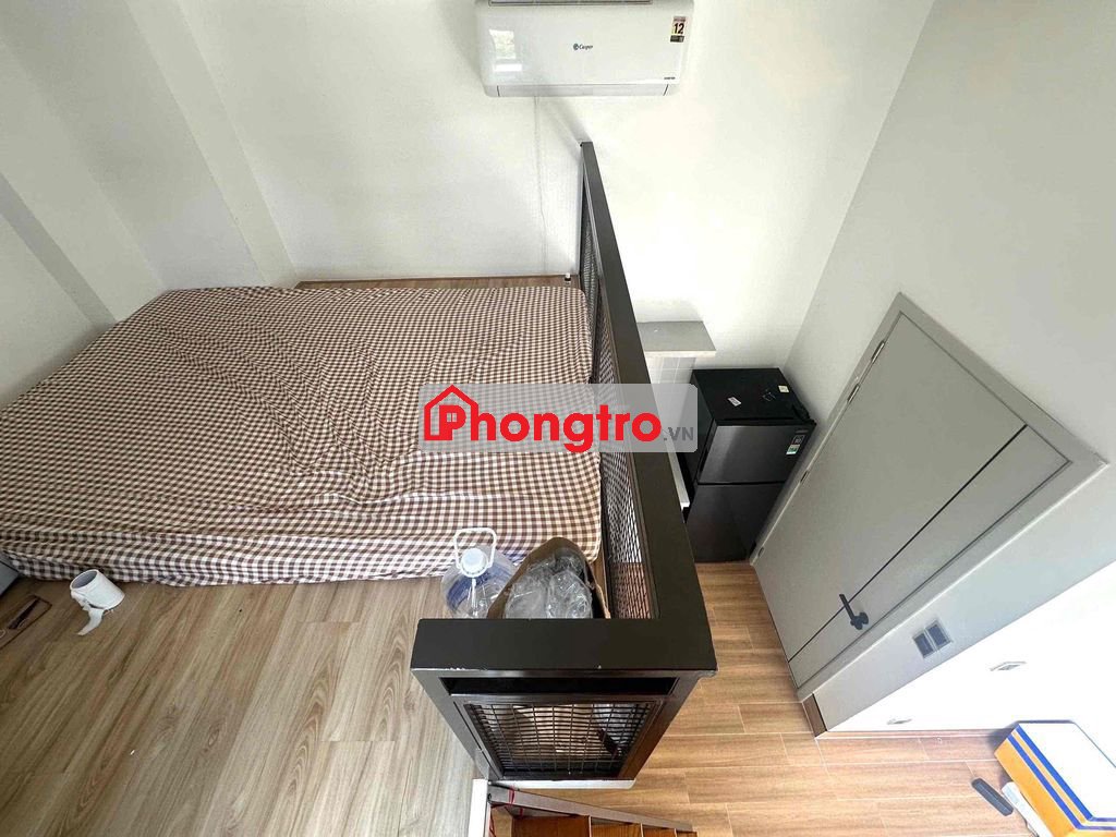 Phòng mới, thiết kế hiện đại, trần cao, có gác lửng rộng. Không gian thoáng, nhiều ánh sáng, ở riêng tư và yên tĩnh.