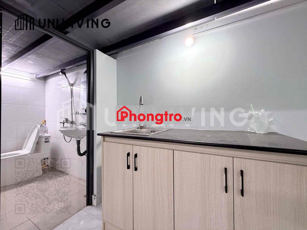 • Khu bếp riêng, có tủ bếp + bồn rửa
