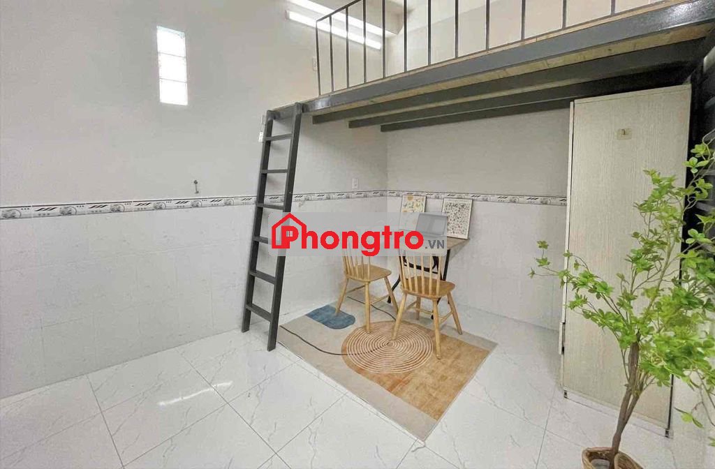 Phòng đẹp, mới, thiết kế gác lửng rộng rãi, thoáng mát. Trang bị đầy đủ nội thất: giường, tủ quần áo, bàn ghế, bếp, tủ lạnh, máy lạnh. Có cửa sổ đón ánh sáng tự nhiên, WC riêng trong phòng.