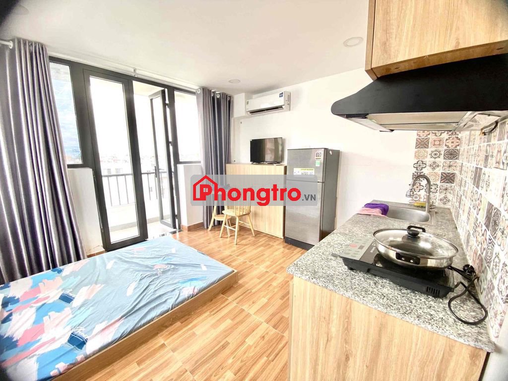 - Phòng có ban công siêu rộng, thoáng mát, được trang bị đầy đủ nội thất như: Máy lạnh Panasonic inverter, tủ lạnh Sharp inverter 160L, Tivi Led 32 inch, nệm cao su, tủ quần áo, bàn ghế, bếp, máy hút mùi...phòng vệ sinh trang bị nội thất cao cấp.