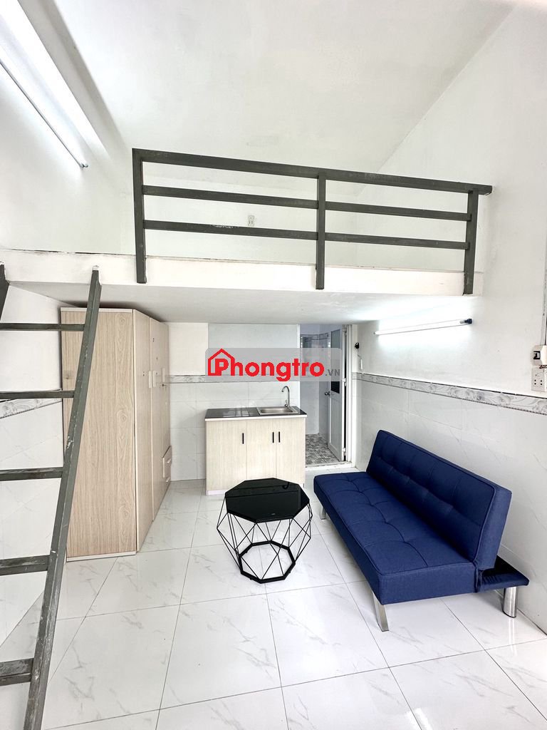Phòng mới xây có gác, sẵn nội thất. Rất sạch sẽ, thoáng mát.