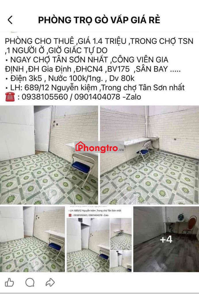 • PHÒNG CHO THUÊ ,GIÁ 1.4 TRIỆU ,TRONG CHỢ TSN ,1 NGƯỜI Ở ,GIỜ GIẤC TỰ DO