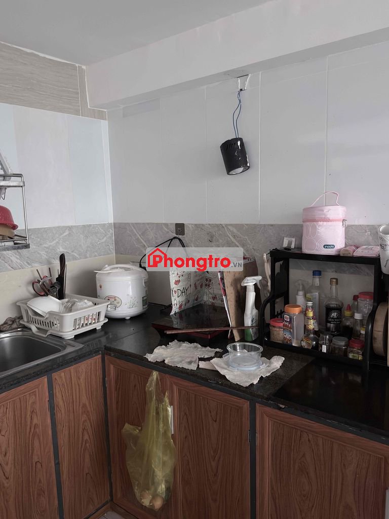 Bếp chung ở dưới trệt, có bàn ăn, kệ bếp lớn. nhà toàn con trai ít nấu ăn nên cũng chỉ có phòng mình sử dụng.