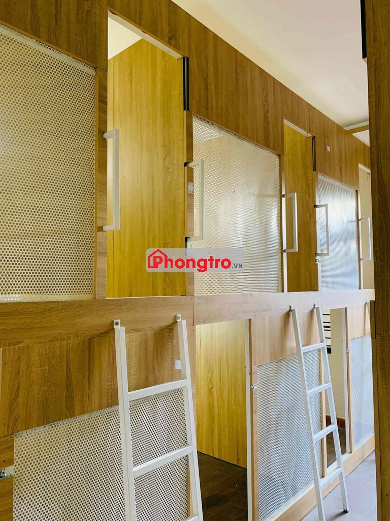 Trọ dorm ghép sleepbox ô riêng, đủ hết tiện nghi, giá tuần 500-600k, giá tháng 1,4tr-1,65tr /tháng BAO ĐIỆN NƯỚC, cọc 300k, ĐIỀU HOÀ 24/24. Tạp vụ dọn hàng ngày. zalo ***