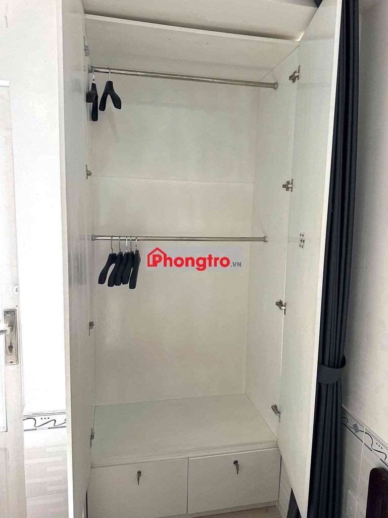 Trong phòng có sẵn tủ quần áo, máy lạnh, máy nước nóng, giường nệm, quạt