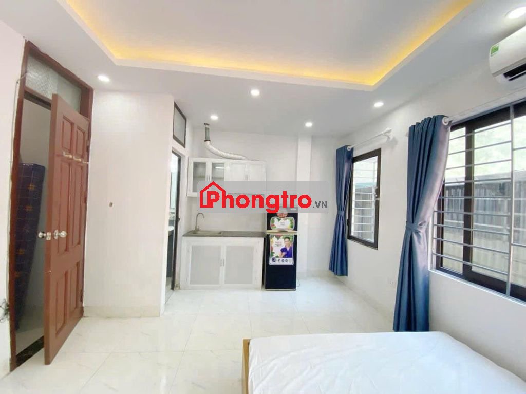 Phòng đã trang bị đầy đủ tiện nghi điều hòa, nóng lạnh, giuong, kệ bếp tủ bếp, cửa sổ thoáng.