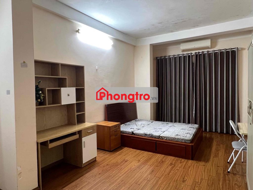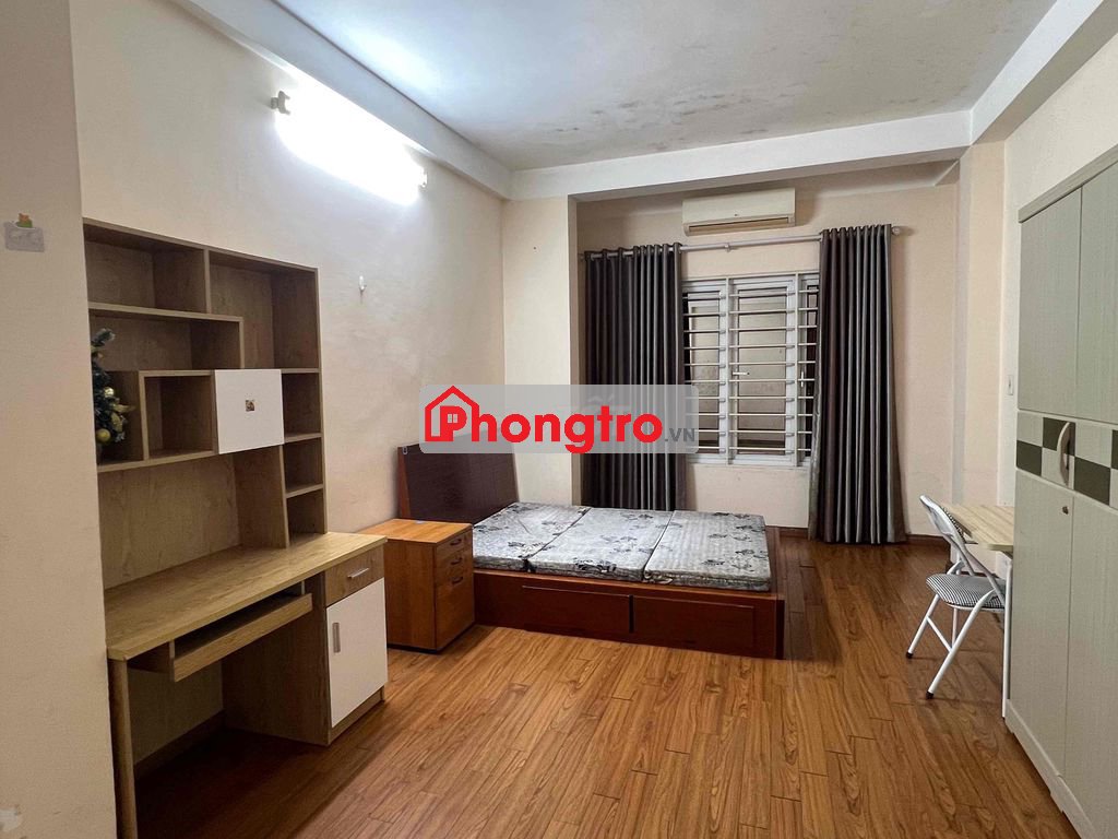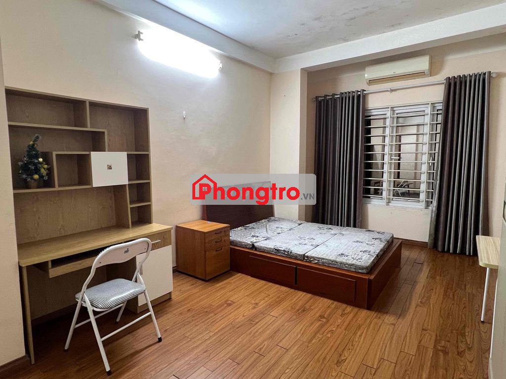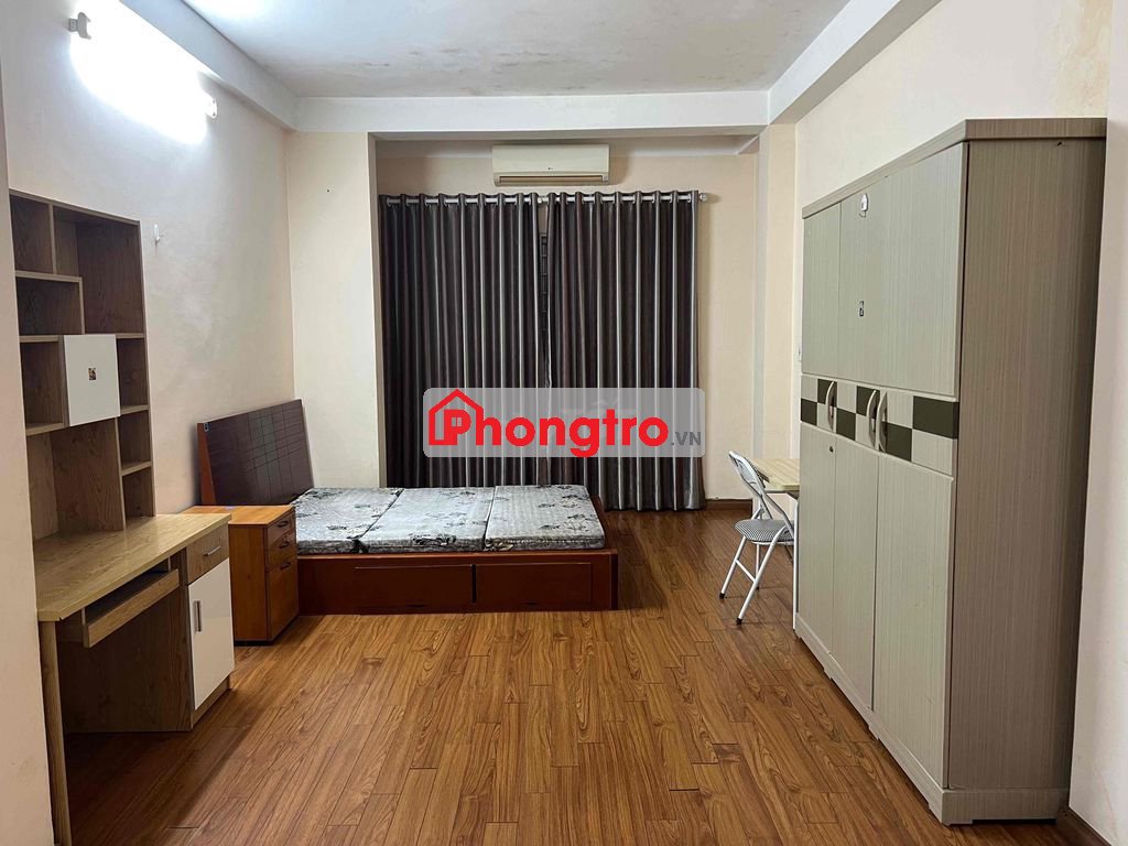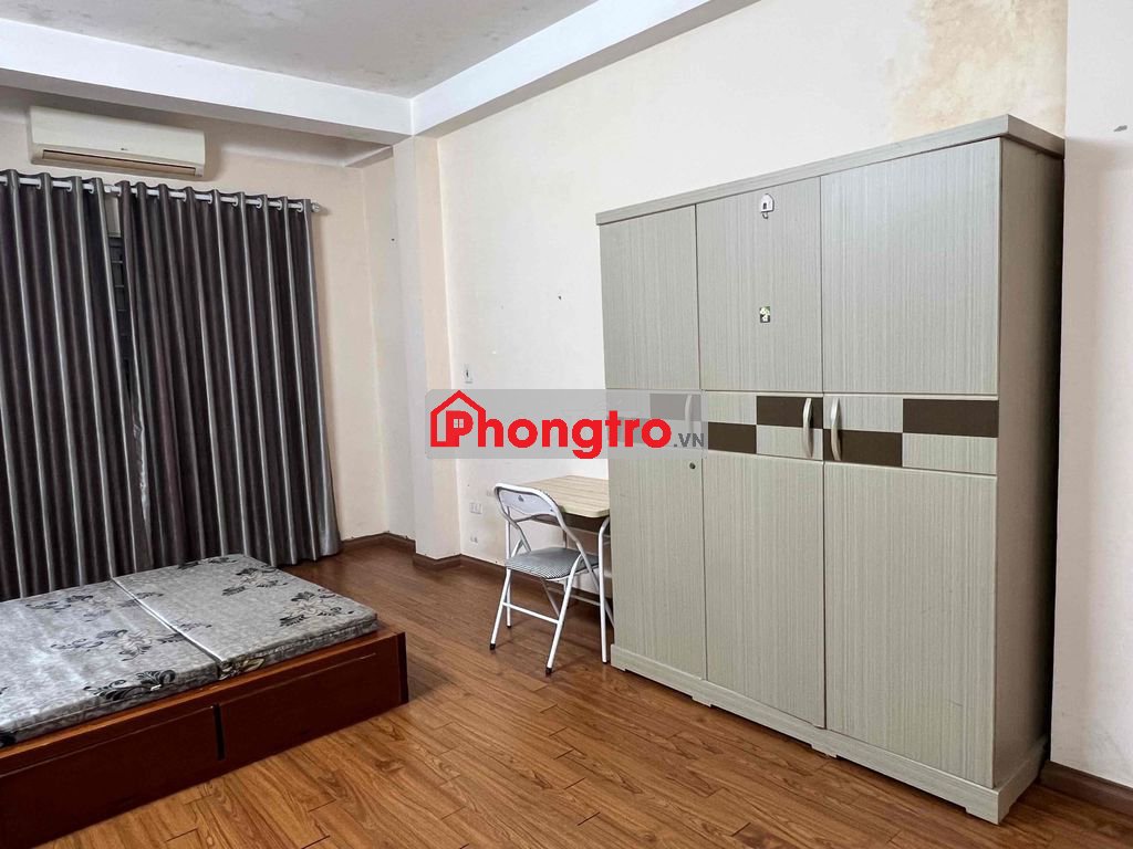 Phòng 25m2, giá 3,9tr/th, điều hòa, nước nóng, đệm, giường, tủ, bàn ghế, sàn gỗ.