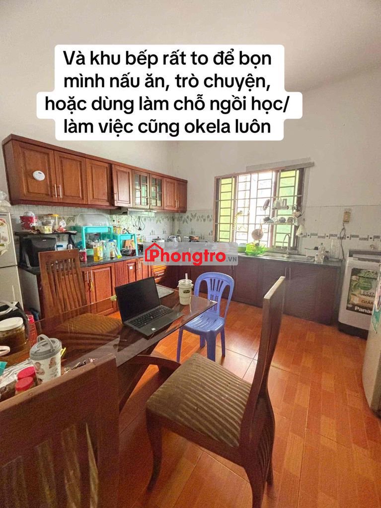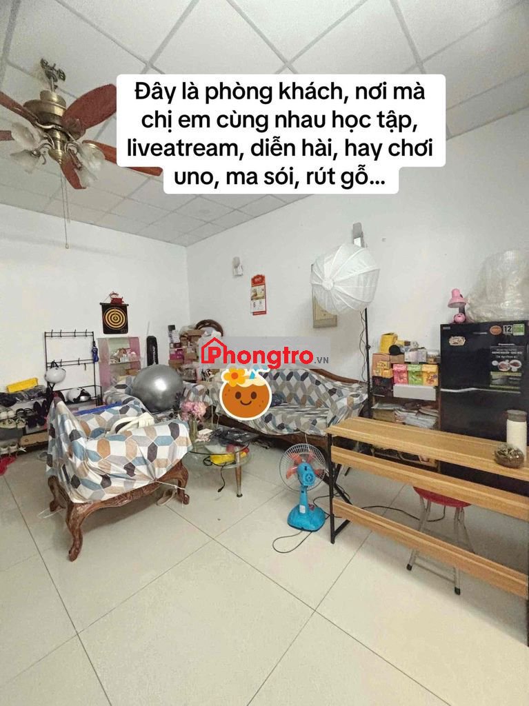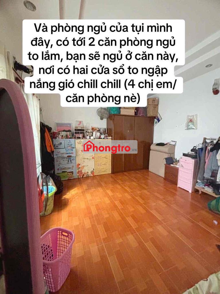 helo mình cần tìm 1 bạn nữ dễ thương, hoà đồng ở ghép nha. Phòng ở lầu 2(thang bộ), phòng hiện tại có 7 người(thêm bạn nữa là 8 đó). Có 2 phòng ngủ(nvs ở mỗi phòng), 1 phòng bếp và 1 phòng khách. Phòng bếp có 2 tủ lạnh, tất cả đều dùng chung(gia vị nấu ăn là riêng nhen), có máy giặt nè. Phòng ngủ mát mẻ lắm nhea hông có bị bí hay nóng gì đâu. Full nội thất hết rùi giờ bạn chỉ cần xách vali vô ở thoii. Các chị trong phòng đều đã đi làm nên chỉ thường gặp vào buổi tối nha(các chị đáng iu nhiệt tình lắm). Nếu thấy ưng cứ in bốc thẳng mình dắt đi xem phòng nhóoo