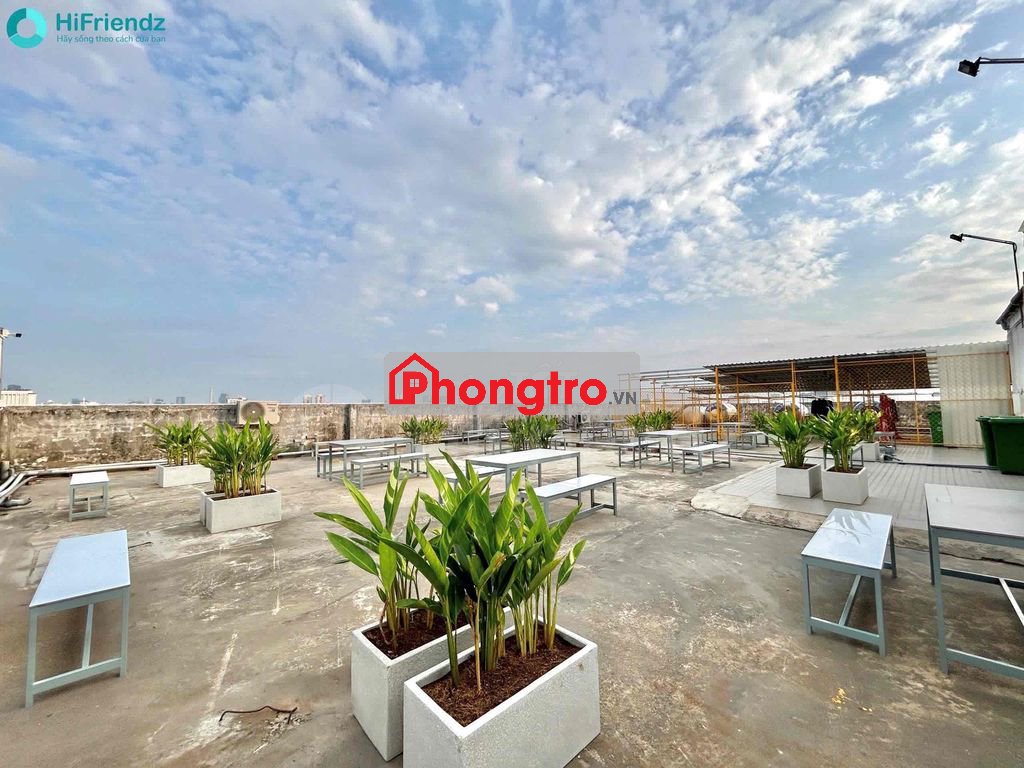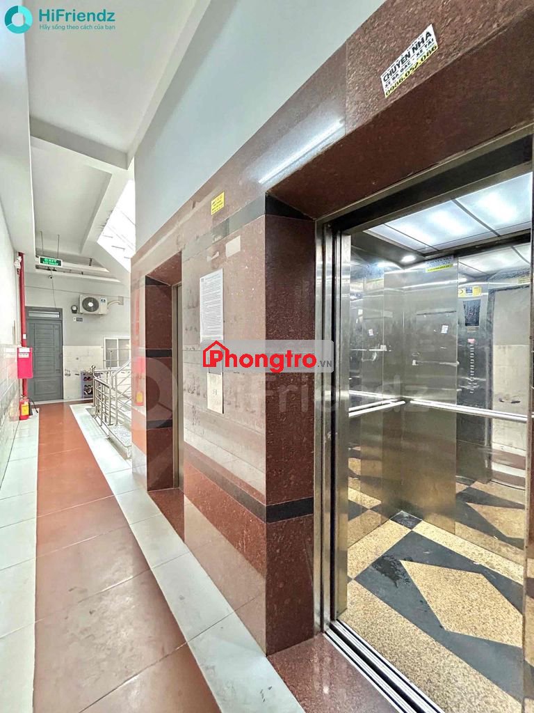 Toà nhà thang máy, bảo vệ, giặt phơi sân thượng mát mẻ.