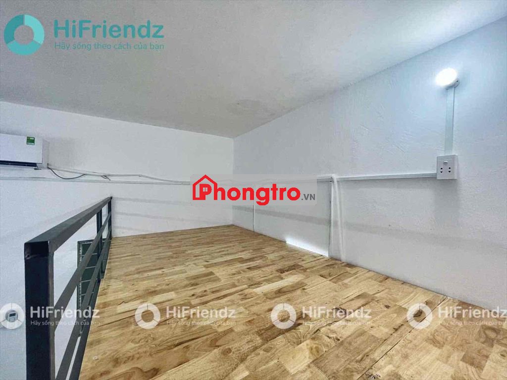 Phòng trang bị sẵn máy lạnh, kệ bếp, tủ quần áo kết hợp gác