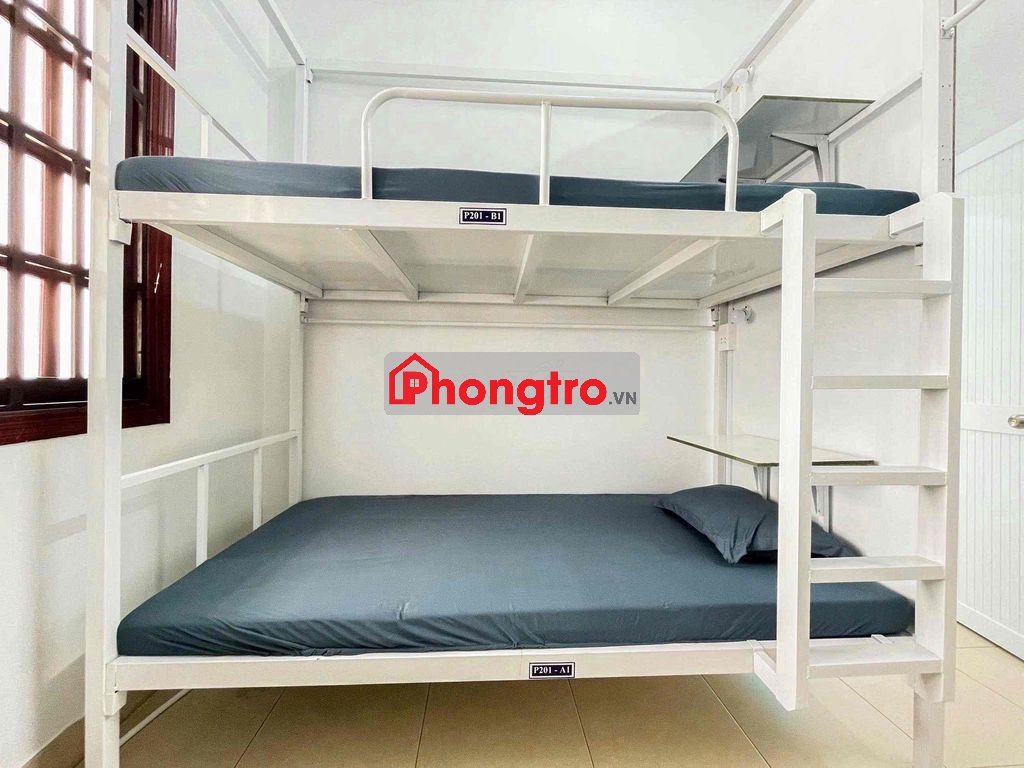 • ️ Giường Tầng Homestay Cao Cấp: Cho bạn không gian riêng tư và thoải mái, có màn riêng, ổ cắm điện và bàn học: