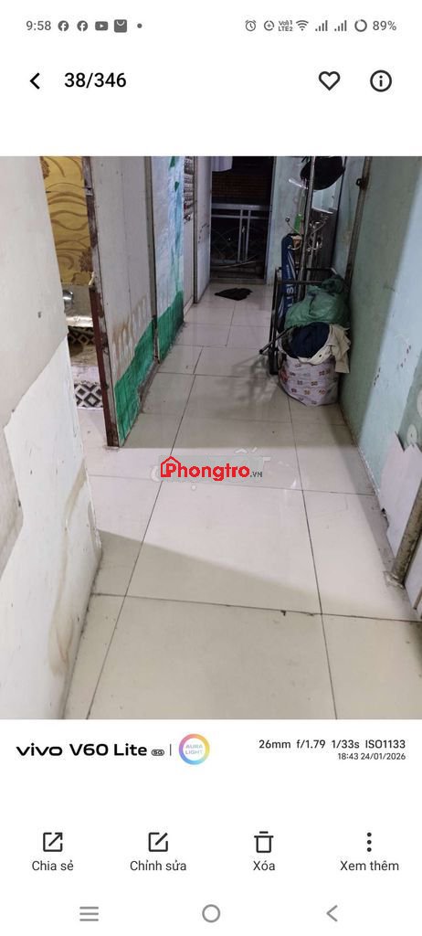 Phòng ở 1 người bao wifi xe nuớc rác điện tính riêng 4 ngàn kg tính riêng phòng lầu 1 lối đi ko chung chủ