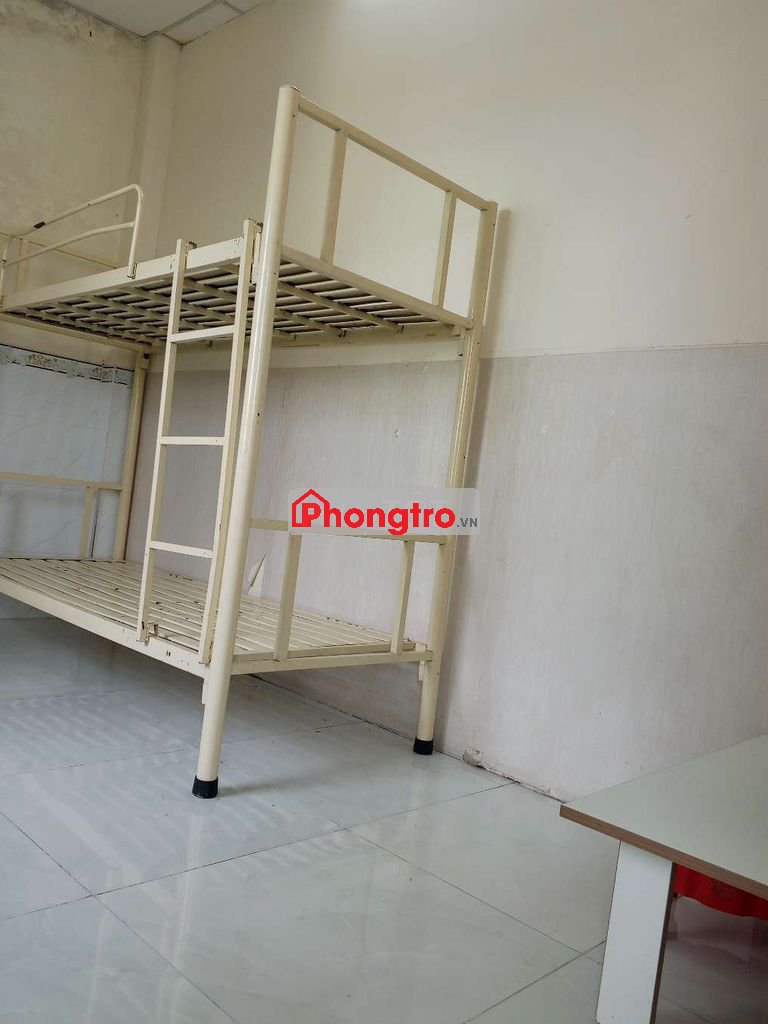 Phòng có giường tầng, quạt, tủ lạnh .