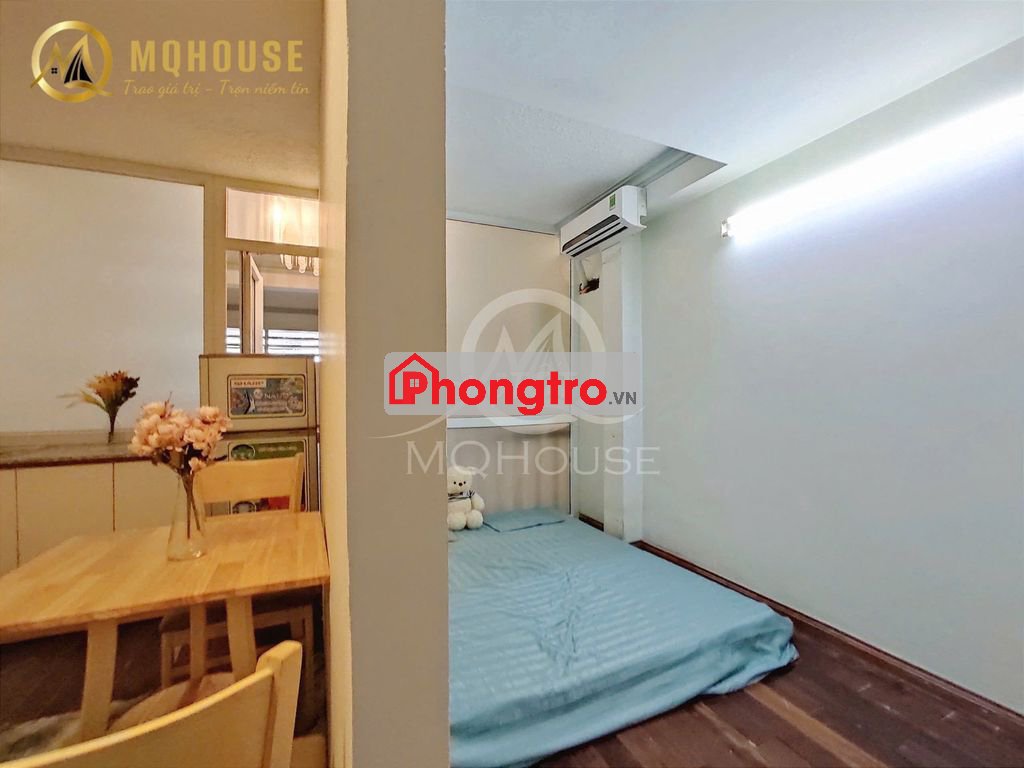 Dạng phòng: 2pn, wc, tách bếp + phòng khách. Full nội thất (máy lạnh, tủ lạnh, tắm nước nóng, giường nệm, tủ quần áo, bàn ghế, bếp, máy giặt - phơi riêng)