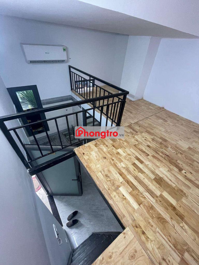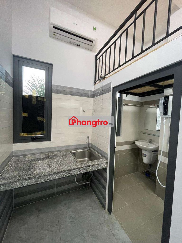 Phòng nội thất cơ bản , có gác ,có cửa sổ , có máy lạnh ,tủ bếp ,tủ quần áo
