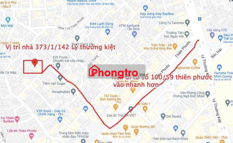 cho thue phòng trọ tầng trệt Lý thường kiệt