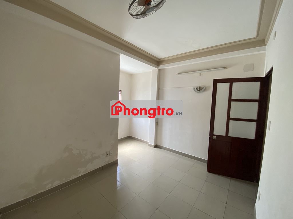 Phòng trống, có quạt trần, cửa sổ