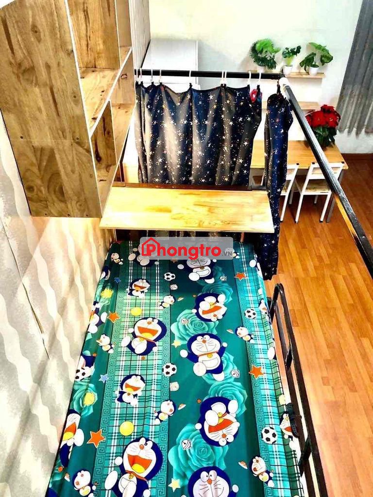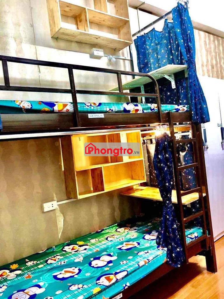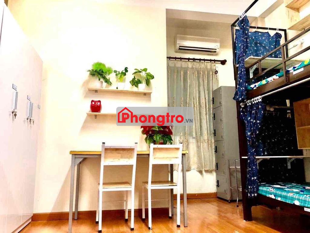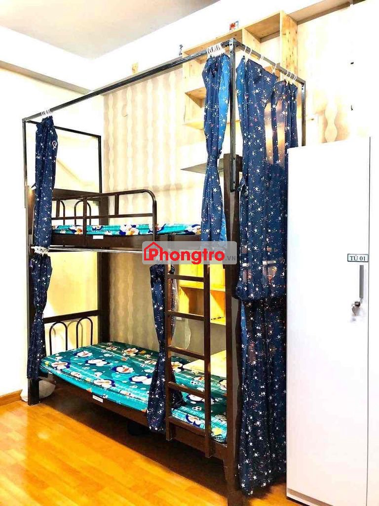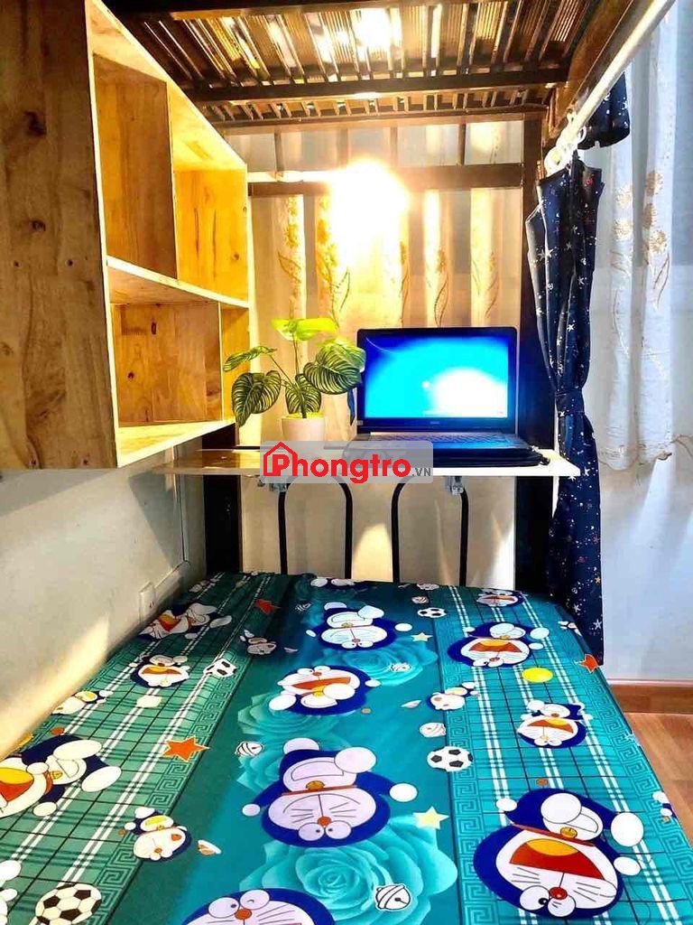 - Đầy đủ nội thất bao gồm máy lạnh, tủ lạnh, giường nệm, bàn học, bàn làm việc, tủ quần áo, giường thiết kế có rèm che rất riêng tư các bạn chỉ xách vali vào ở.
