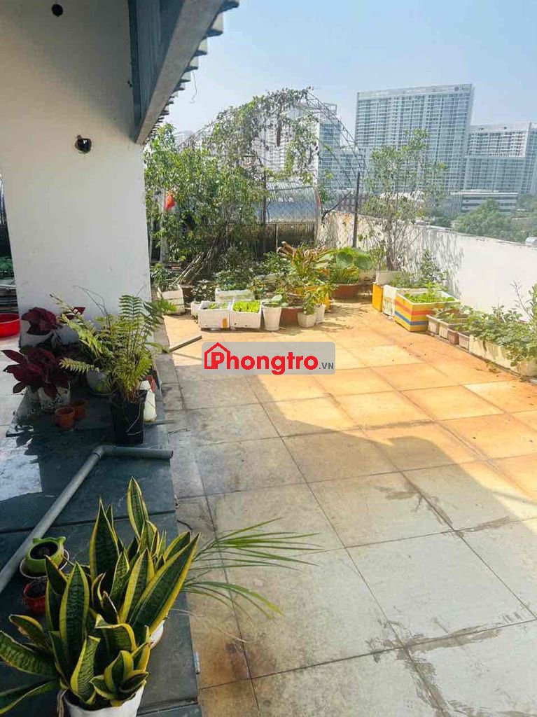 Sân thượng rộng: 5 máy giặt, nhiều chỗ phơi, có cây xanh, view toàn TP
