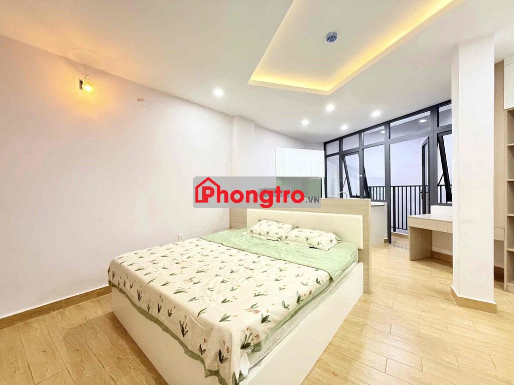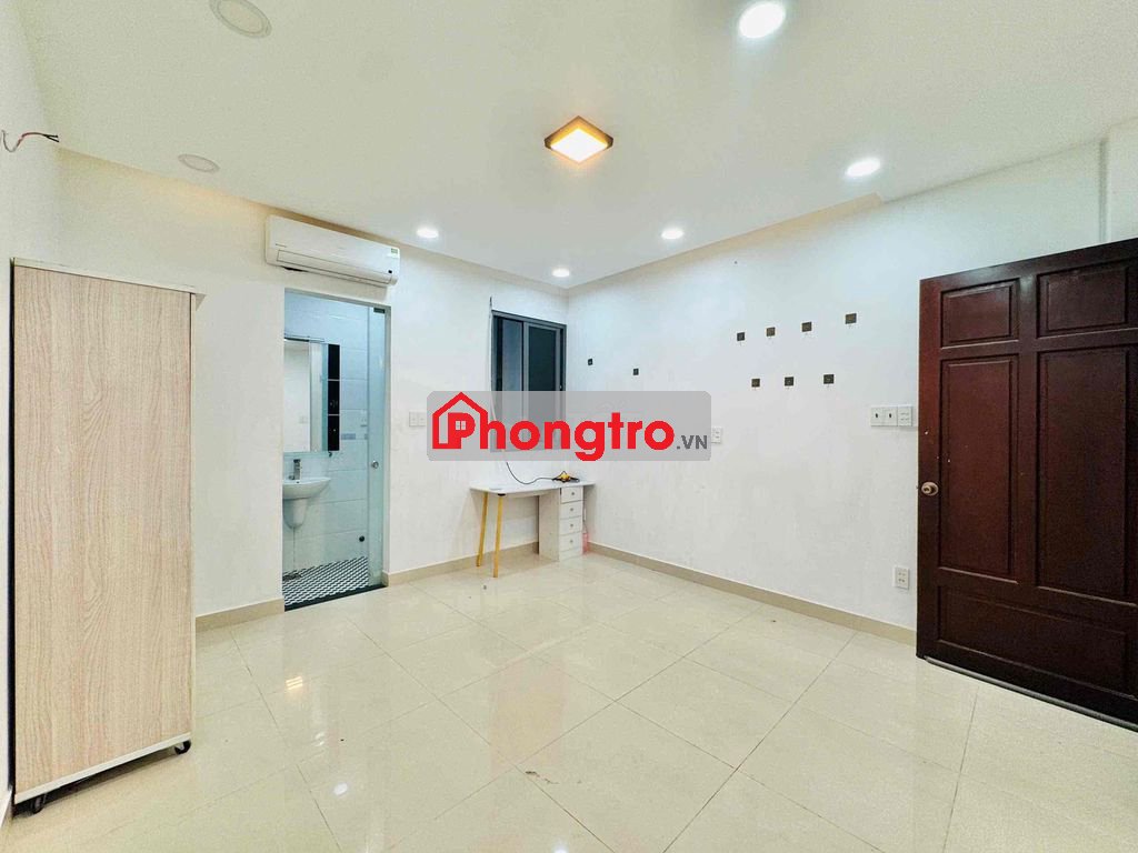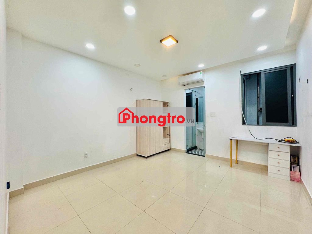 Trống sẵn phòng nhỏ có cửa sổ lớn, nội thất cơ bản máy lạnh, giường, tủ quần áo, wc máy nước nóng.