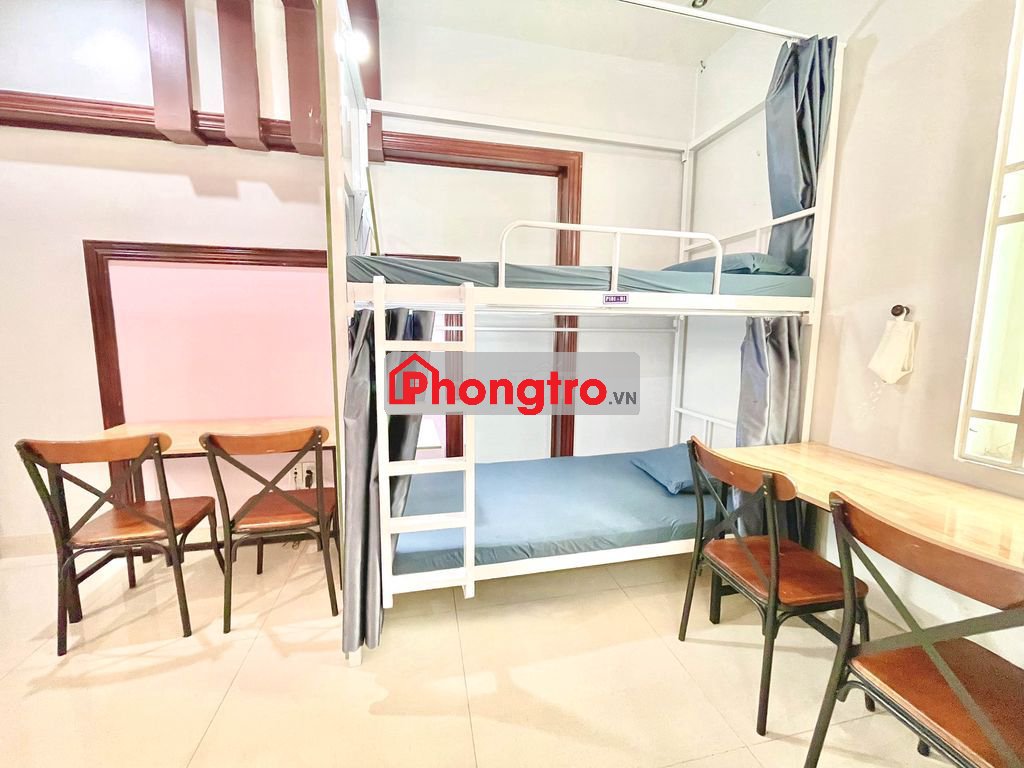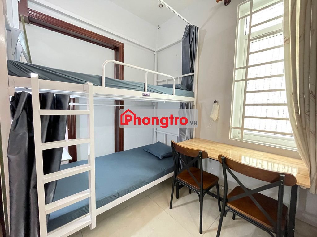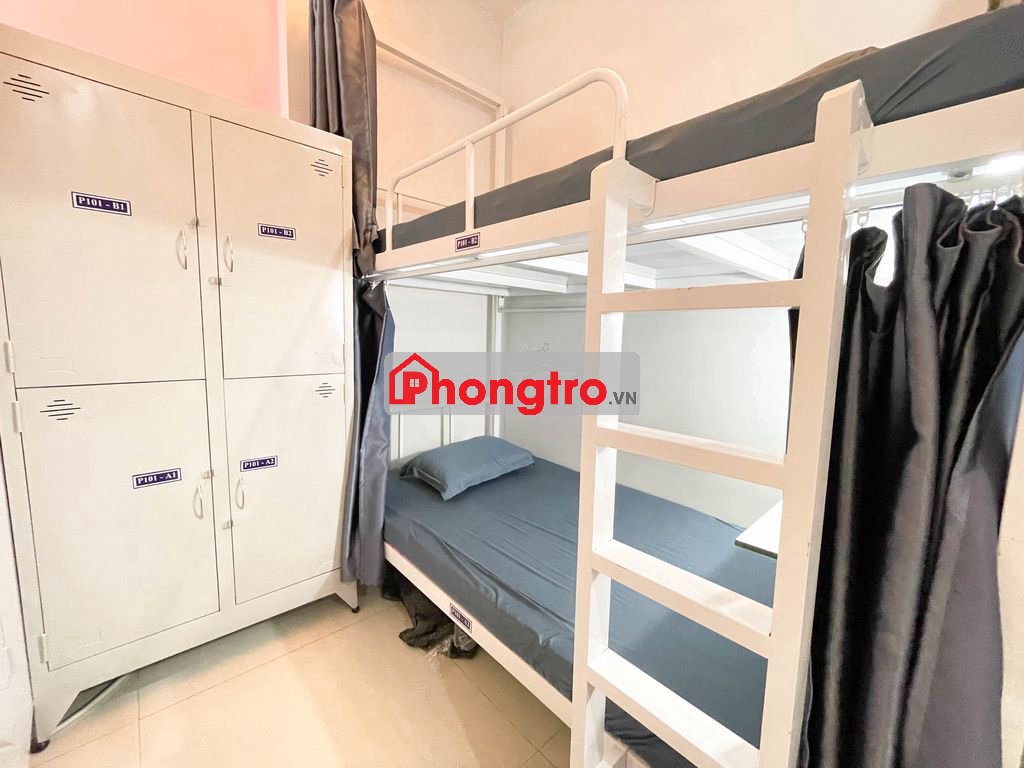 - Giường có sẵn nệm, gối, drap, bàn học và bóng đèn trên giường, mỗi người 1 tủ đồ riêng.