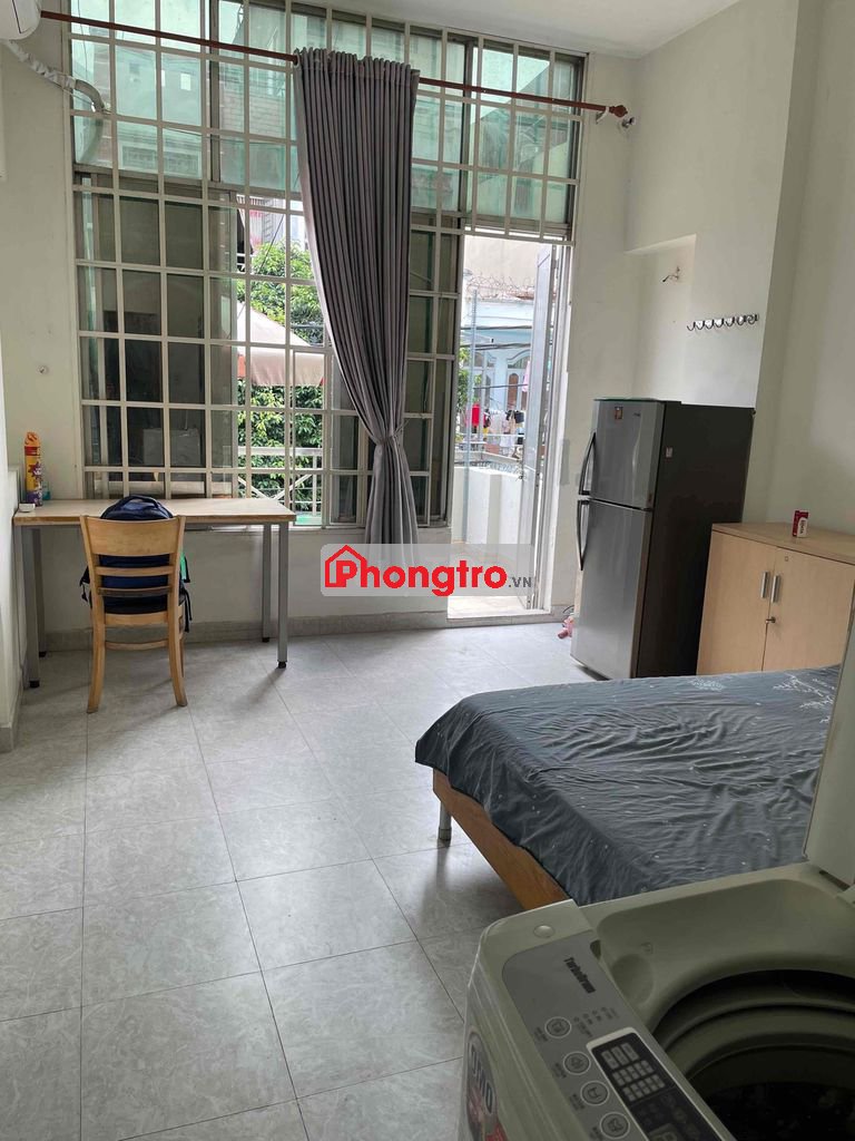 Phòng Studio siêu đẹp và thoáng gần Đại Học Công Thương, Aon Tân Phú, có ban công rộng, cửa sổ lớn.