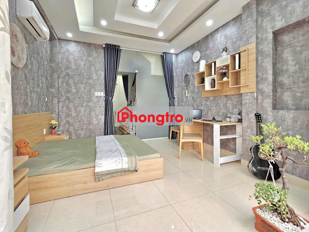 Căn hộ riêng tư, đầy đủ nội thất: giường, nệm, tủ áo, máy lạnh, tủ lạnh, bếp – kệ bếp, bàn làm việc, bàn trang điểm, máy giặt riêng, nước nóng.