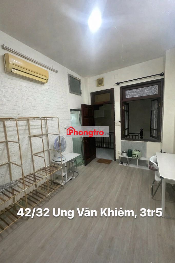 42/32 Ung Văn kHiêm, Bình Thạnh. Phòng 3tr5 tầng 1 có máy lạnh, nệm, bàn, giờ giấc tự do, cho nấu ăn có đầy đủ dụng cụ bếp, quạt, cho nuôi pet, có toilet riêng, free xe để xe trong nhà , gần FTU, UTH, Hutech thuận tiện di chuyển, k chung chủ, k ngập, phòng rộng 20m2 ở được 2 người, có cửa sổ, thoáng, ban công phơi đồ chung.
