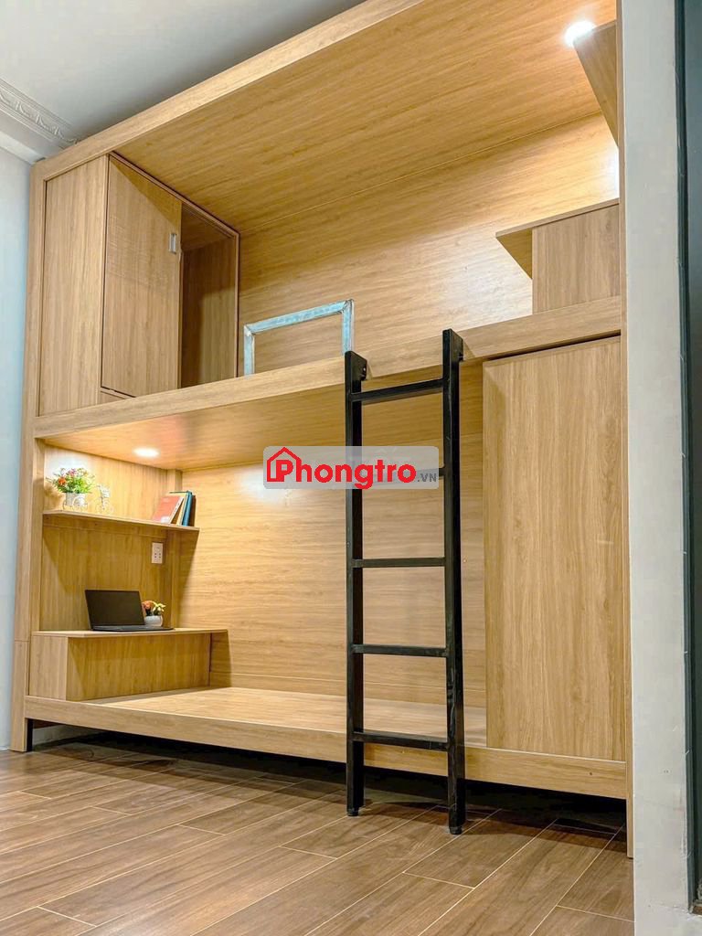 - Box mới 100%: với rèm, nệm, drap, tủ quần áo, tủ khoá và bàn làm việc riêng tư