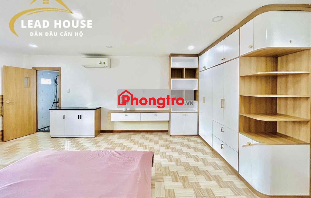 Studio rộng rãi, có sẵn máy lạnh, giường, nệm, kệ bếp, tủ quần áo