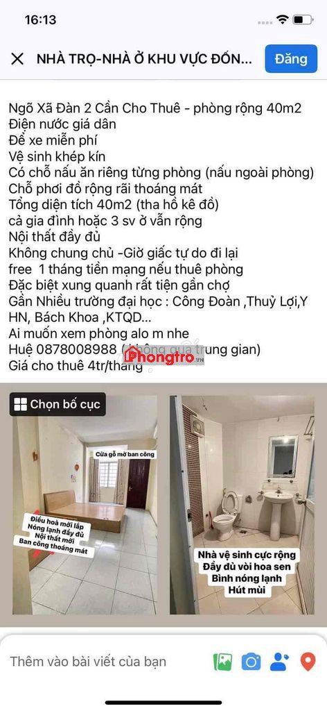 cho thuê phòng Xã Đàn Đống Đa